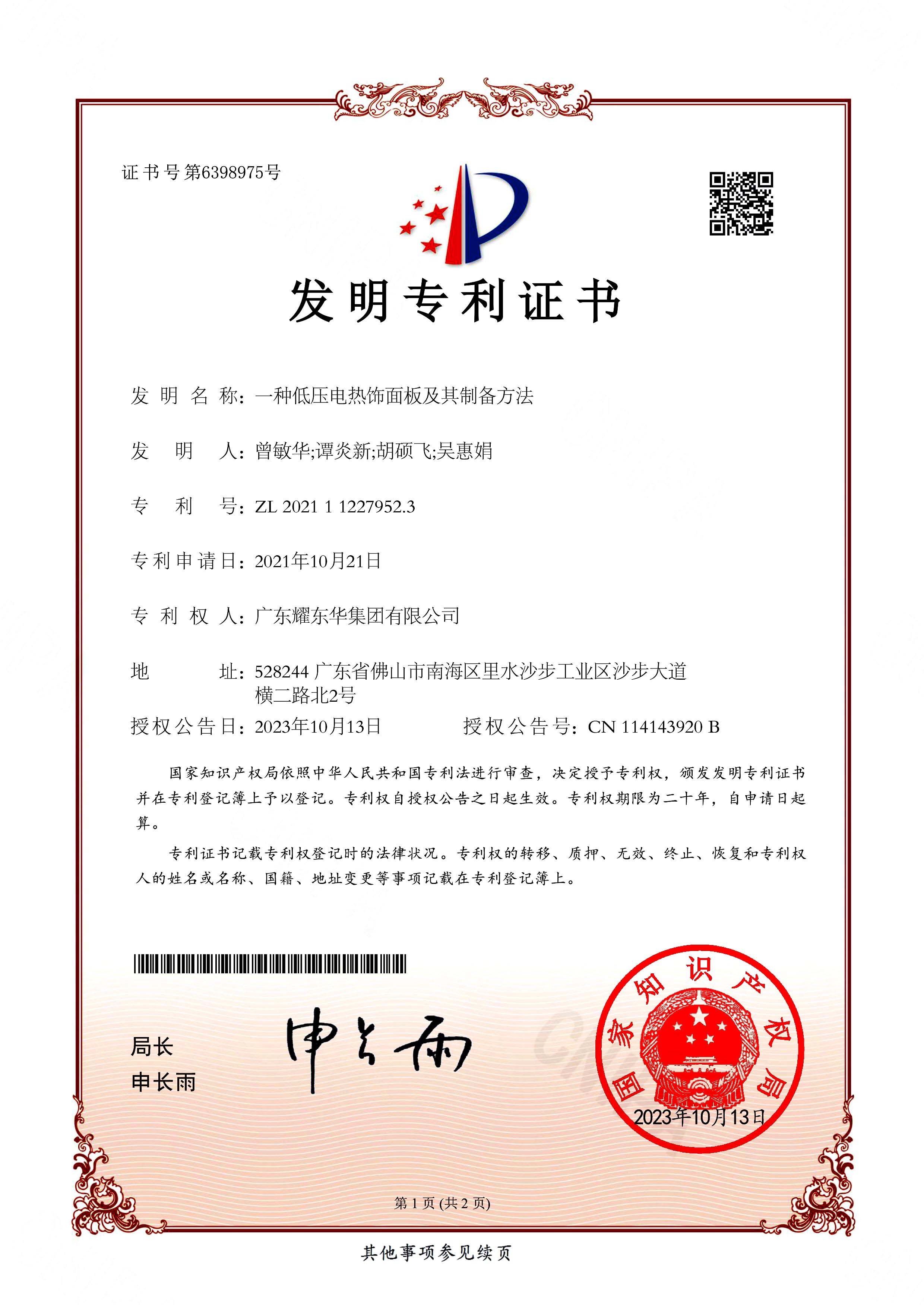• 一种低压发热饰面板及其制备方法