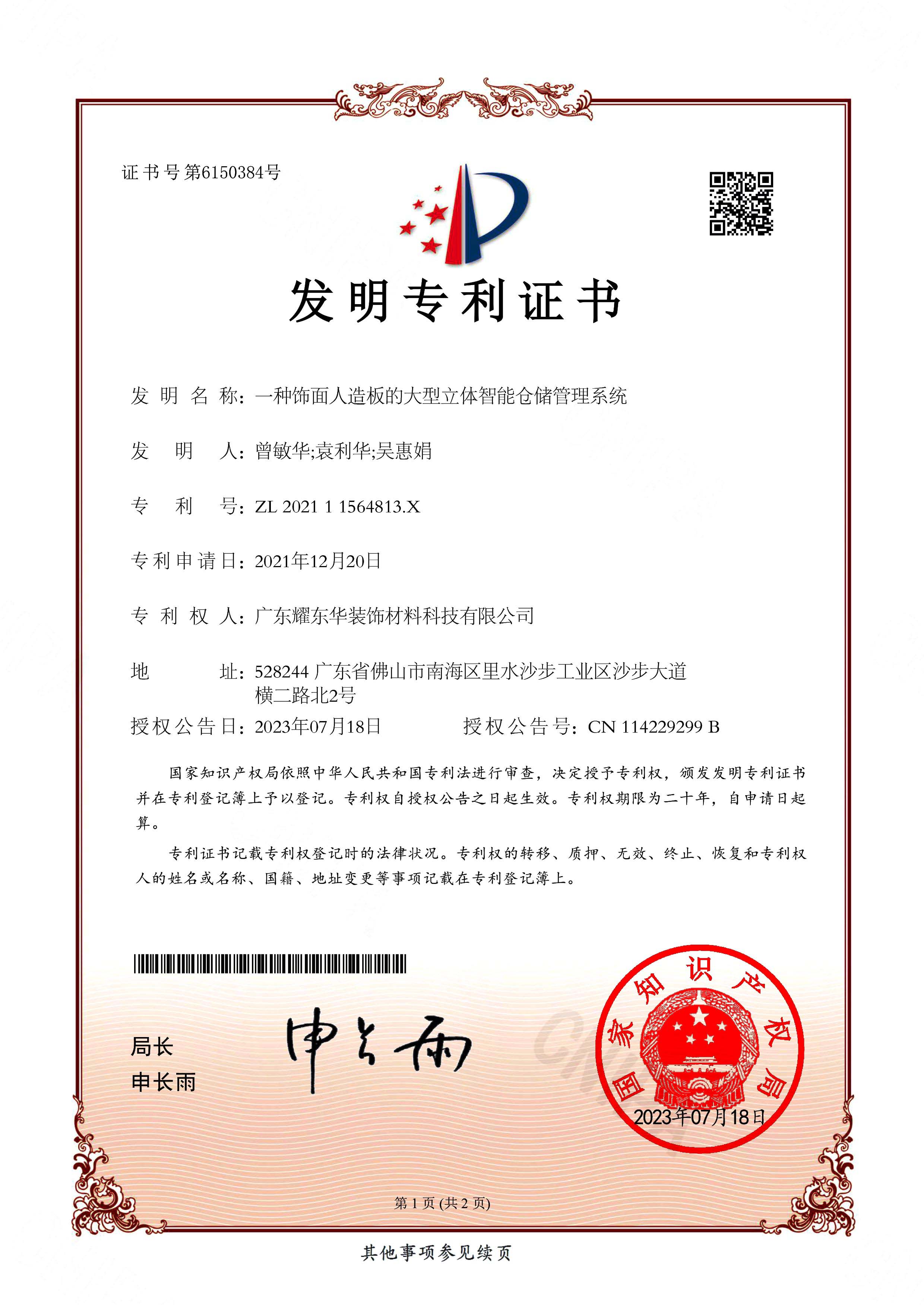 • 一种饰面人造板的大型立体智能仓储管理系统