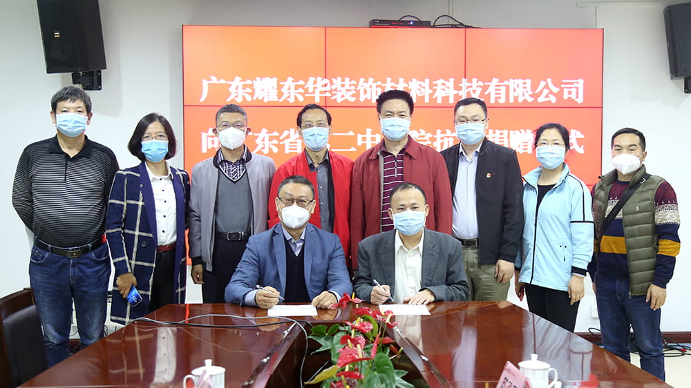 2020年3月6日下午,广东IOS/安卓通用版/手机APP下载装饰材料科技有限公司向广东省第二中医院捐赠一批“红棉花”牌抗菌防霉饰面刨花板定制的家具,用于改善医院呼吸科医护人员及病人的环境,共同抗击新肺疫情,捐赠仪式在广东省第二中医院举行。