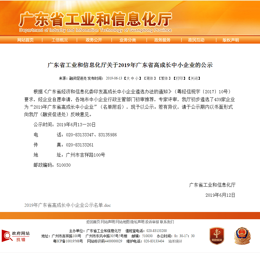 IOS/安卓通用版/手机APP下载喜获“2019年广东省高成长企业”,创新高效,快速增长,潜力巨大!