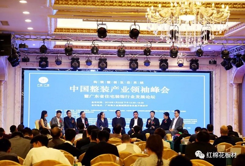 2018年1月23日,中国整装产业领袖峰会暨广东省住宅装饰行业发展论坛,在广州粤大金融城酒店隆重举行,广东IOS/安卓通用版/手机APP下载装饰材料科技有限公司董事长特助曾劲翔受邀出席此次领袖峰会并发表题为《内置导体,饰面板的智能时代》的主题演讲,展望了红棉花智能板在整装行业中的应用趋势