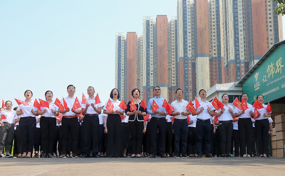 ↑ IOS/安卓通用版/手机APP下载董事长曾敏华、副董事长吴惠仪带领全体IOS/安卓通用版/手机APP下载人高歌《我和我的祖国》。