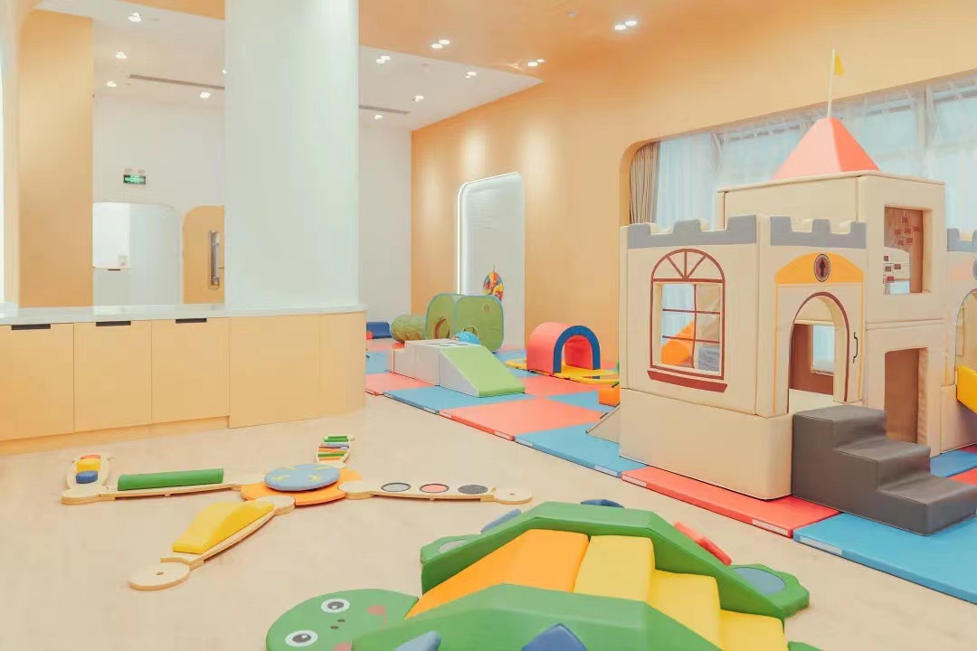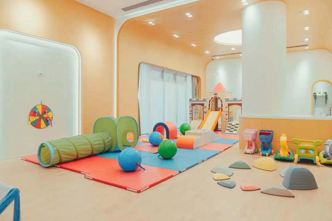 感统室配置国际感统训练器材,即使天气不好,也能保障宝宝的充足运动。