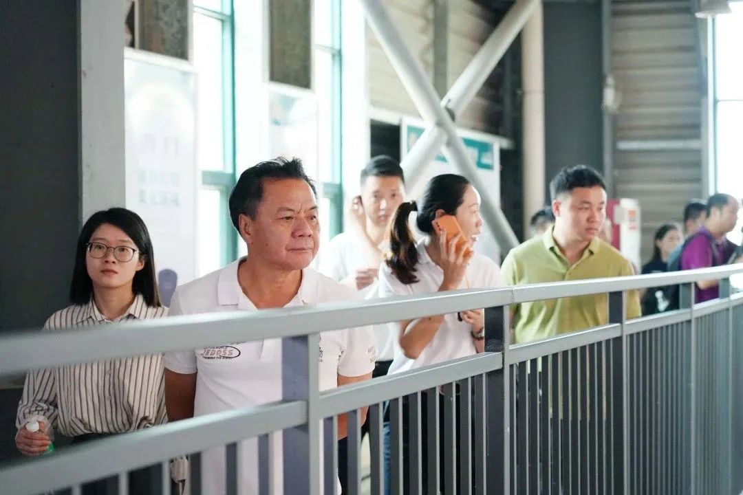 ▲广东省家居建材商会会长曹宇勇(右十一)、广东江南·体育(JN SPORTS)官方网站董事长曾敏华(右十二)、广东江南·体育(JN SPORTS)官方网站副董事长吴惠仪(左九)带领一众会员参观IOS/安卓通用版/手机APP下载智能制造基地。