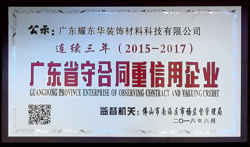 2015-2017年广东省守合同重信用企业
