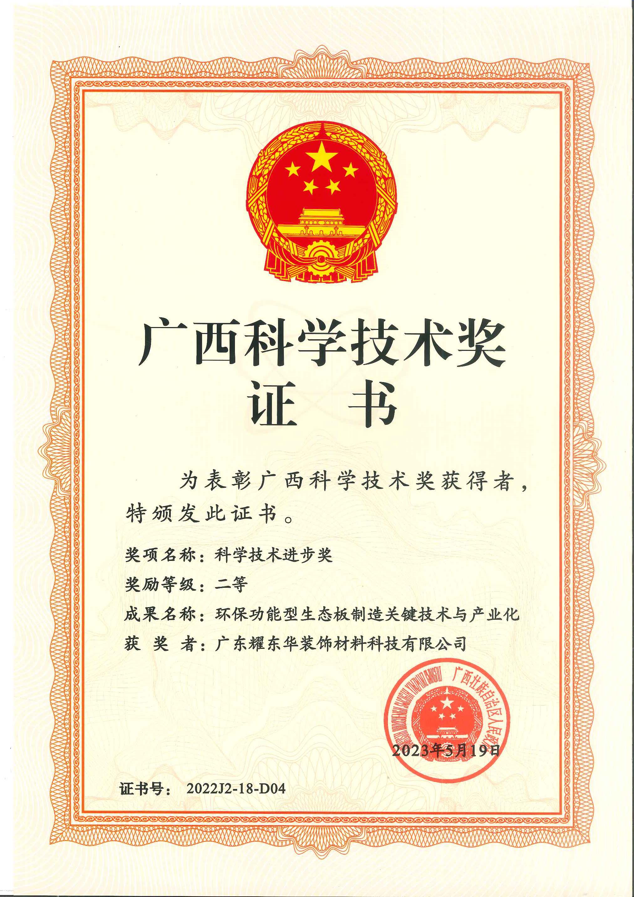 广西科学技术进步二等奖
