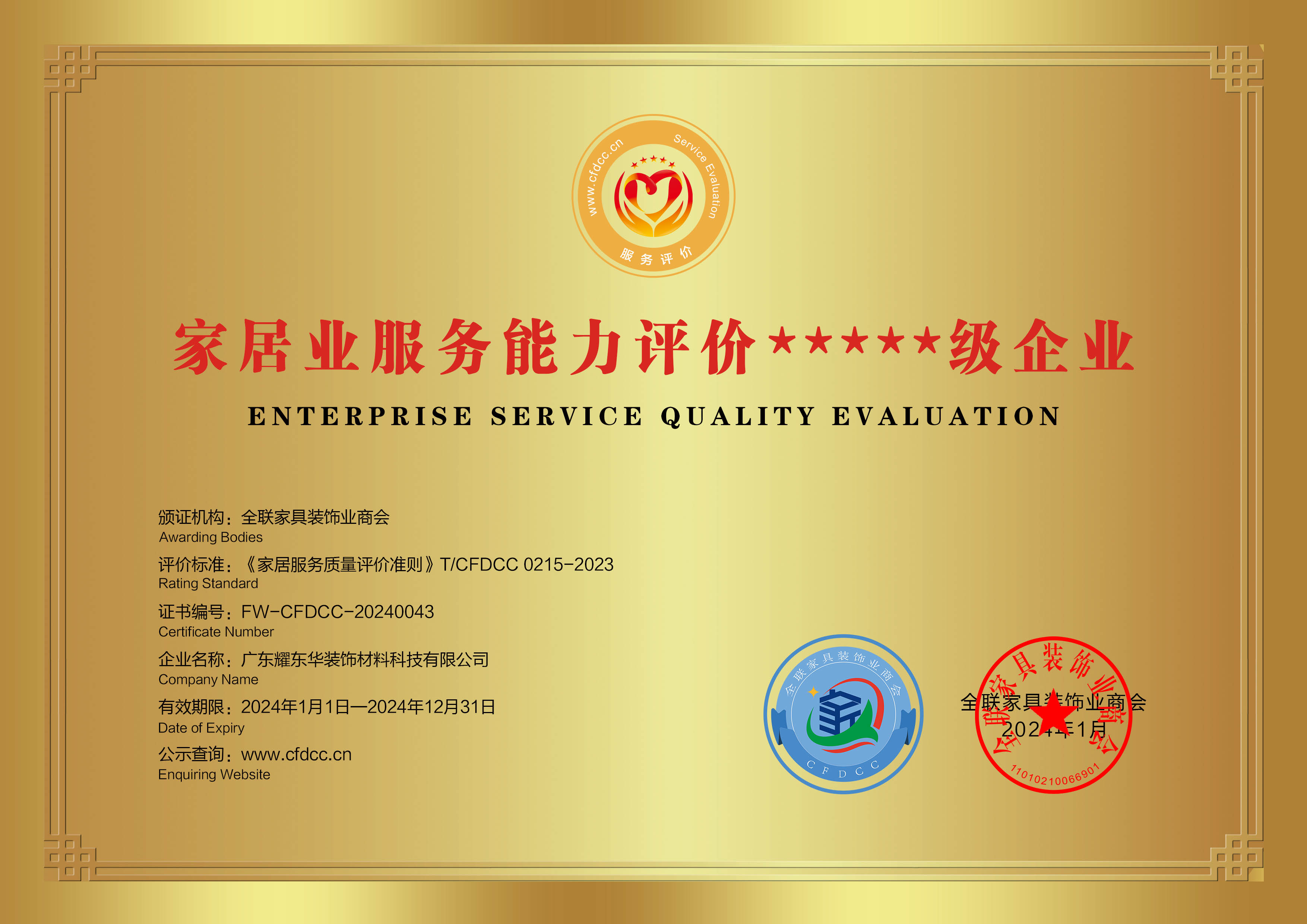 家居业服务能力评价5星级企业